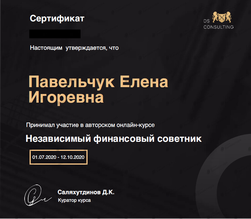 Разработанный финансовый план на долгосрок, открытие инвестиционных счетов, формирование стратегий и финансовой защиты. Создания долгосрочного капитала в валюте. Выход на пассивный доход. Индивидуальный подход к клиенту, максимальная диверсификация и защита денег.